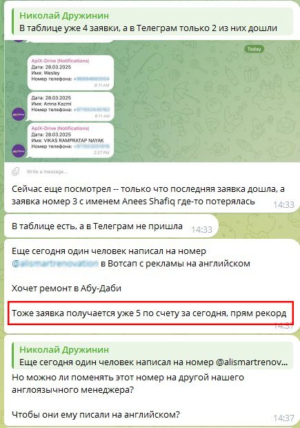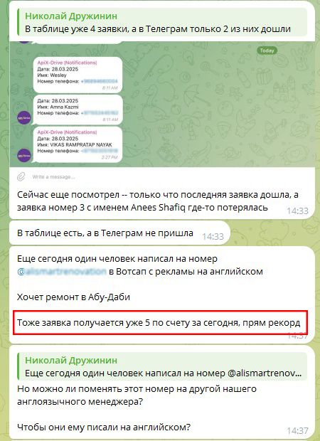 2. Новые заявки будут отображаться в CRM-системе, таблице или чате Телеграм.